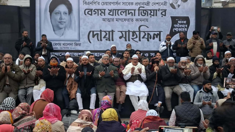 দোয়া মাহফিলে বেগম খালেদা জিয়ার আত্মার মাগফেরাত কামনার পাশাপাশি দেশ ও জাতির শান্তি, সমৃদ্ধি ও কল্যাণ কামনা করা হয়।